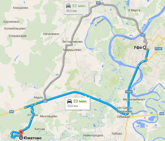 Кстати, что касается трассы, то здесь тоже одни плюсы. Расстояние от Уфы до Юматово покрывается без особой спешки за 20 минут. Быстрее, чем до Нагаево в часы пик. Благо, освещённая четырёхполосная федеральная трасса М5 позволяет без проблем добраться до пункта назначения в считанные минуты. Так что при такой дороге 20 км - это не расстояние! Да и общественный транспорт ходит в этом направлении хорошо: маршрутные такси курсируют от города до поселка постоянно.